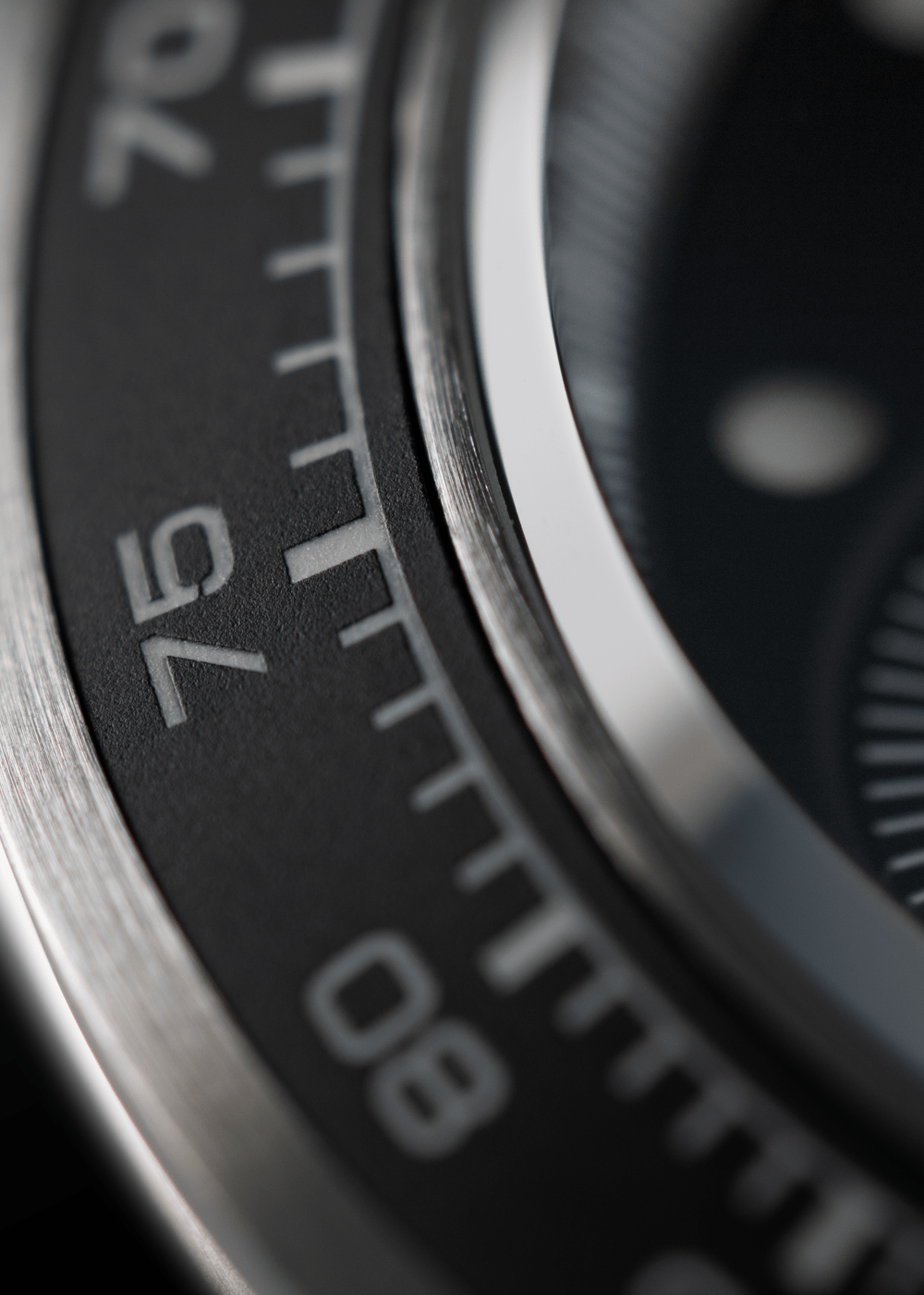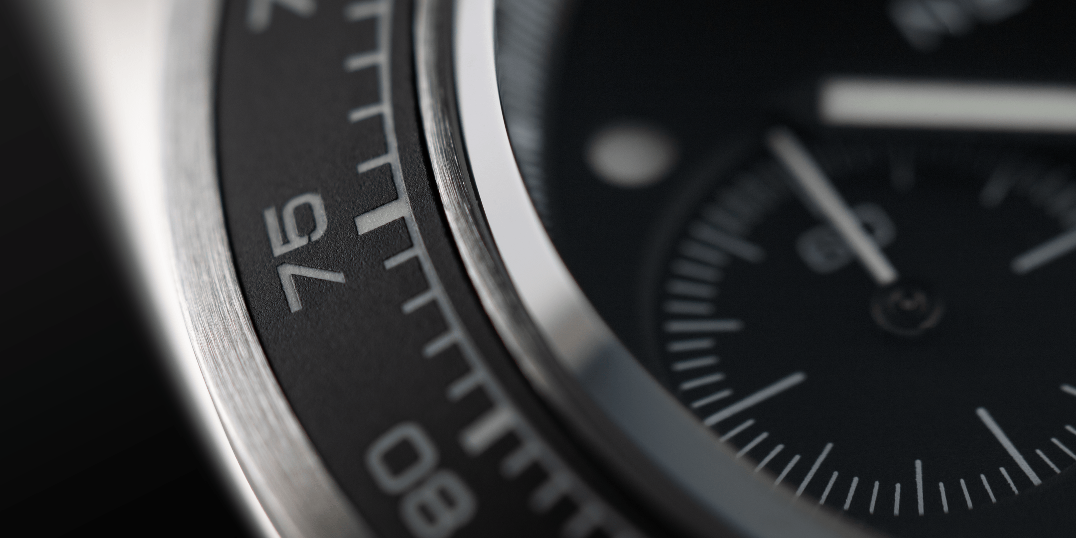 Following our perpetual quest for the most durable build quality and finest finishing, the tachymeter scale insert is moulded in scratch-resistant matte black ceramic. The markers are laser engraved and coated with Superluminova® BGW9 lume that offers optimal legibility in low light situations.