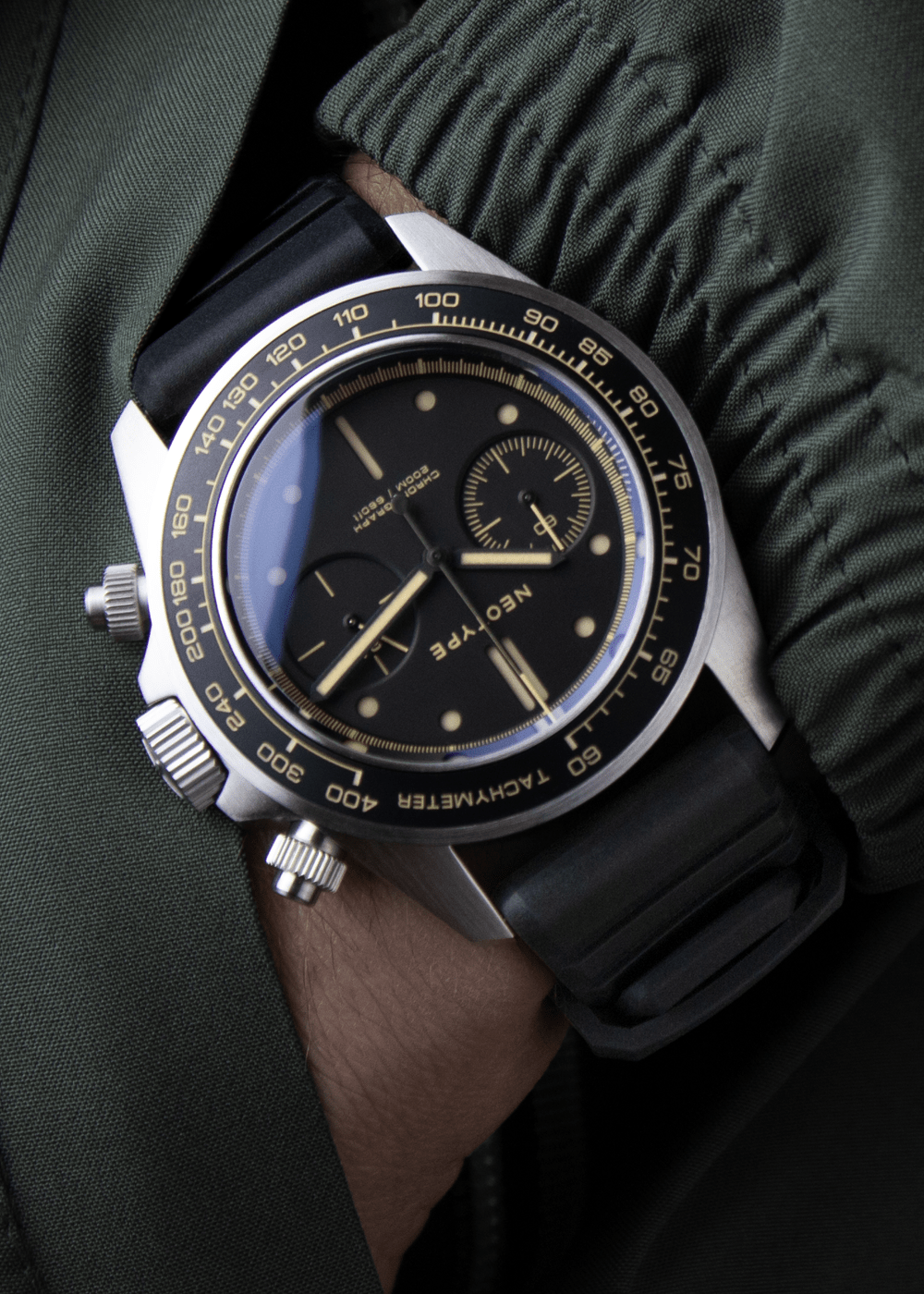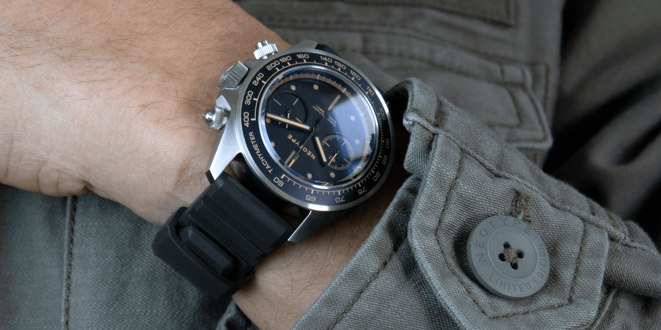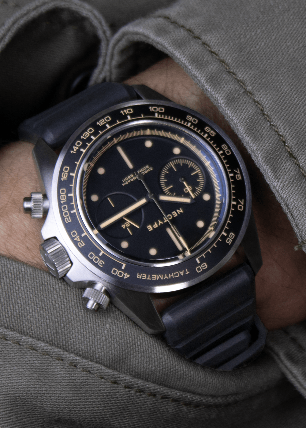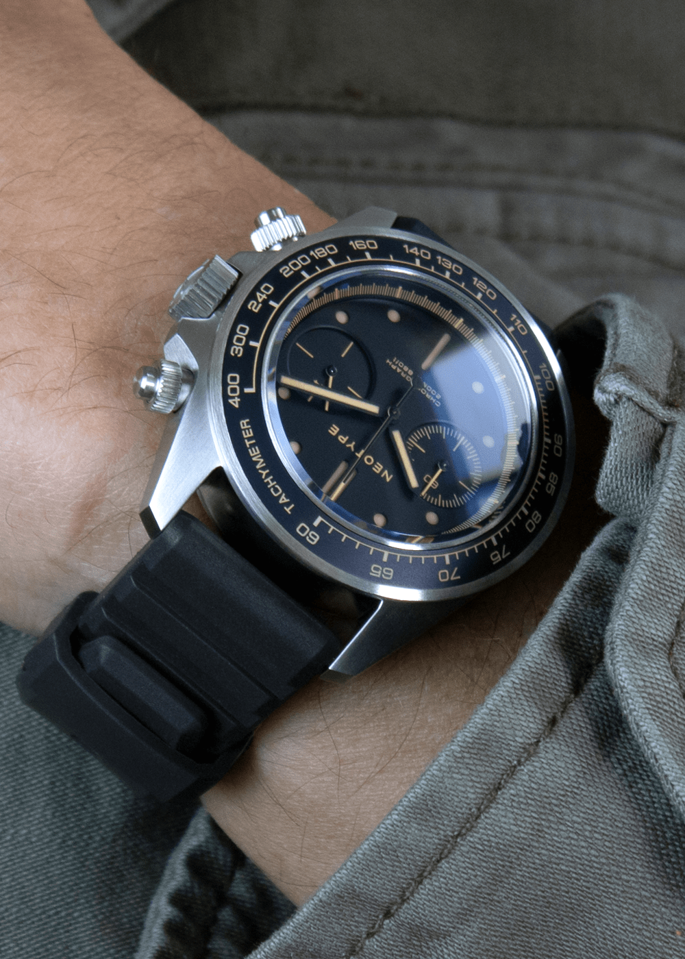 As with each element of the LM02, the strap is the result of internal development, exclusive to NEOTYPE and research into the best materials. From then on, the use of FKM, an elastomer with incredible mechanical and aesthetic properties, adopted by the most exclusive watchmaking companies, was obvious.