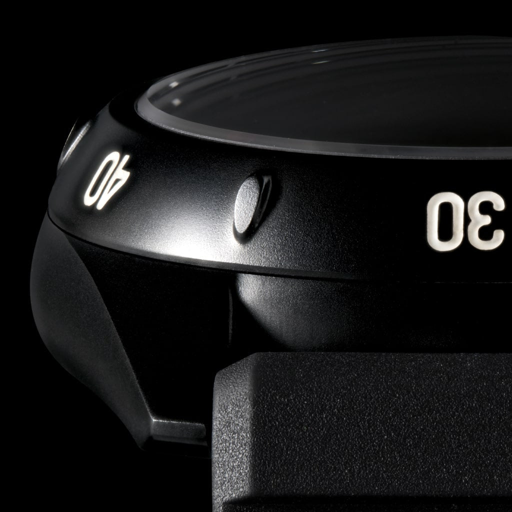 Usiné en acier inoxydable 316L et micro billé puis traité PVD pour une finition noir mat uniforme de la lunette, de la carrure, du fond et de la couronne.